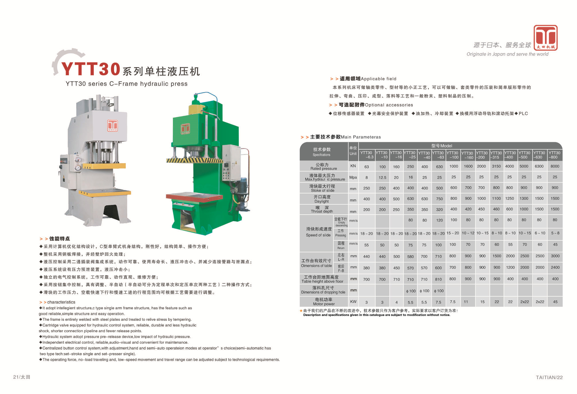 YTT30系列單柱液壓機